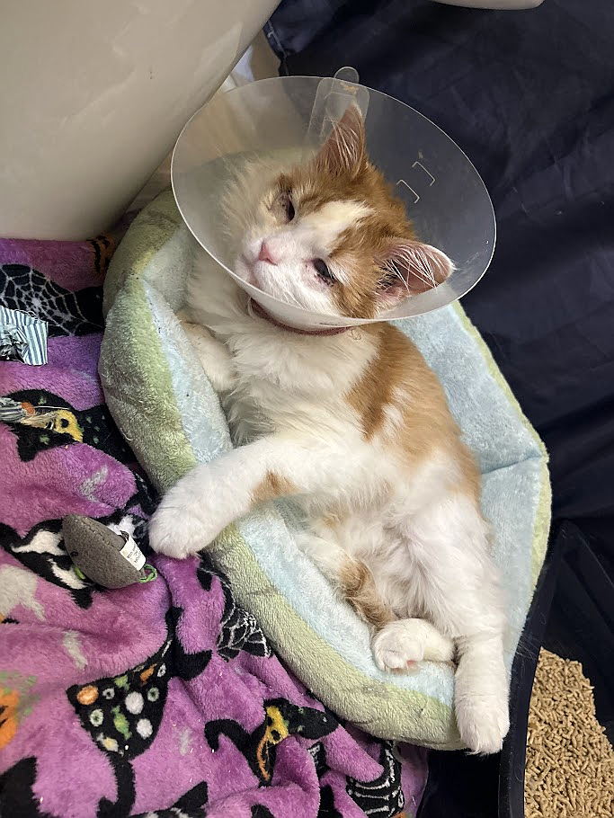 Wybie came to BAHS with very poor vision. He had to undergo surgery on his eyelids to improve his sight. I decided to foster him because we were quite full, and I wanted him to get the attention he needed. Wybie healed remarkably well, and after a few months, even though he doesn't have full sight, he can definitely see much better than he could before!