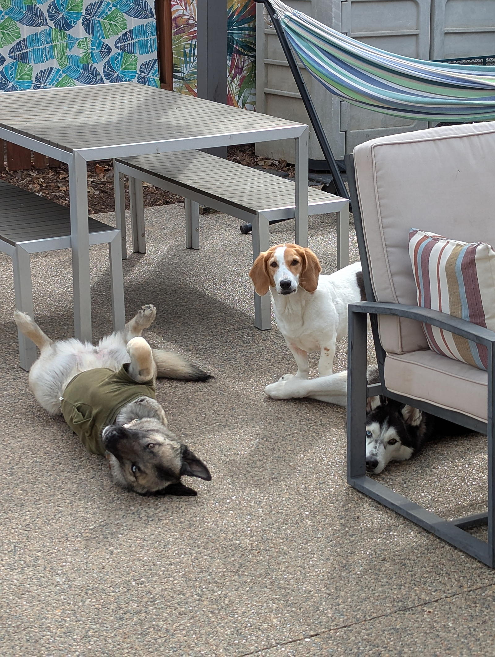 Our "House of Floof" family includes myself and my husband, Matthew, our 7y/o Beagle-Bassett Hound mix "Lilly," our 5y/o Siberian Husky "Loki," our 2y/o Calico kitty "Snickers," and the most recent addition our 1y/o German Shepard "tripawd" named "Trooper." Both Snickers & Trooper were both adopted from TCHS. We have been fostering for TCHS for the past year or so after adopting Snickers because we wanted to help as many others as we could. Trooper was supposed to be just a foster, but we "foster failed" because we instantly fell in love and so did the rest of our "House of Floof." Finding the extra room in our hearts was the easy part. Finding the extra room in the house was the harder part, but who cares right?
